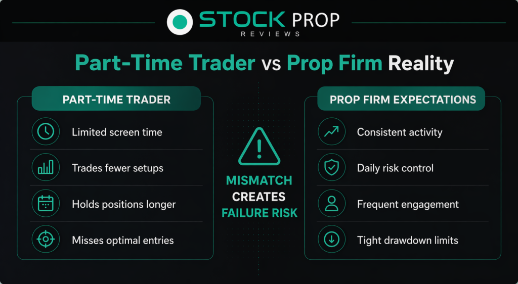 There is no perfect prop firm for part-time trading. The limitation is not just the firm. It is the structure of prop trading itself.