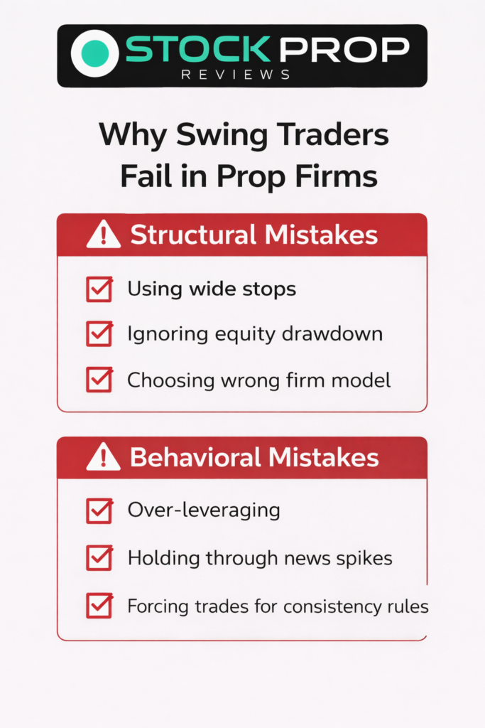 Using the same risk model for both a personal account and a business account is the most common mistake. Swing traders are used to having more room and bigger stops. That way of doing things often leads to early violations in a prop firm.