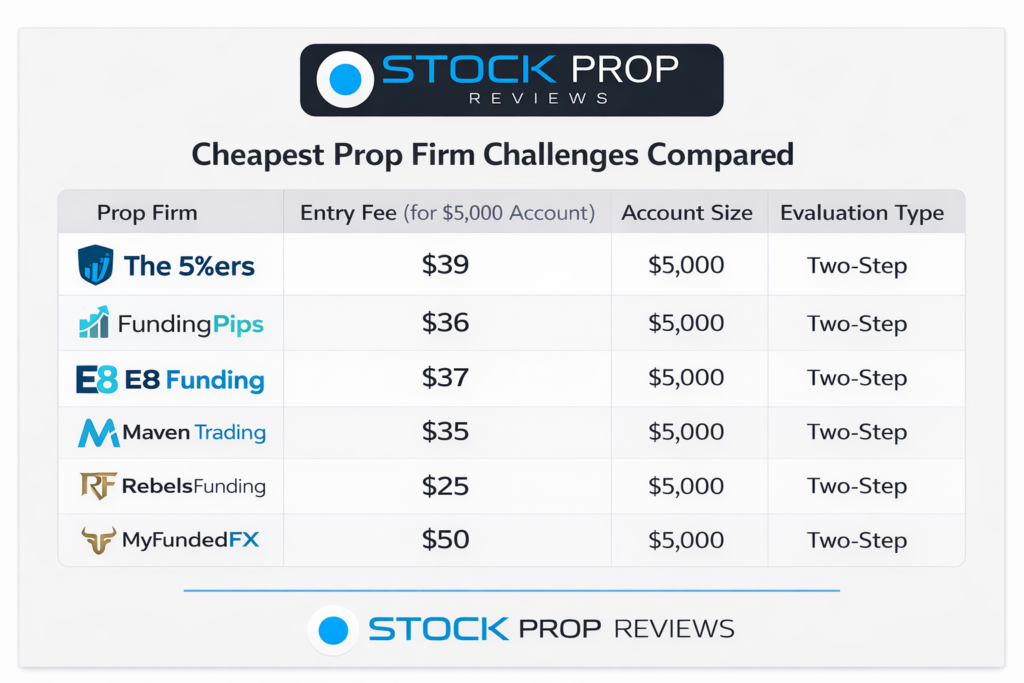 Below we compare some of the more established inexpensive challenges, actual prices where available, and core rules that matter for passing odds.