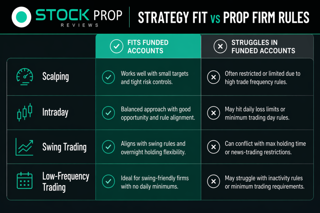 An aggressive trader quickly passes by taking bigger positions. The same method hits drawdown limits after funding. The account is gone in a few days.