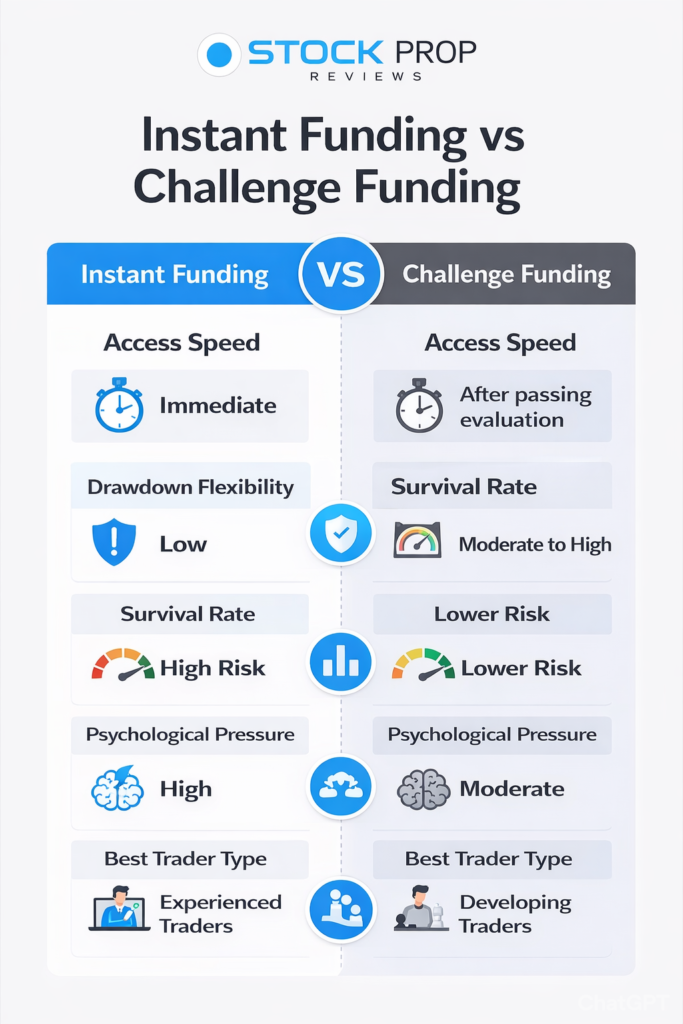 Not always. Instant funding gives you faster access, but it also lowers your chances of survival. Challenge models are more flexible.
